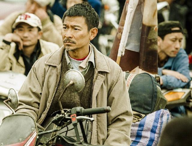 刘德华穿得像一个农民,骑着摩托车一路找寻自己的孩子。