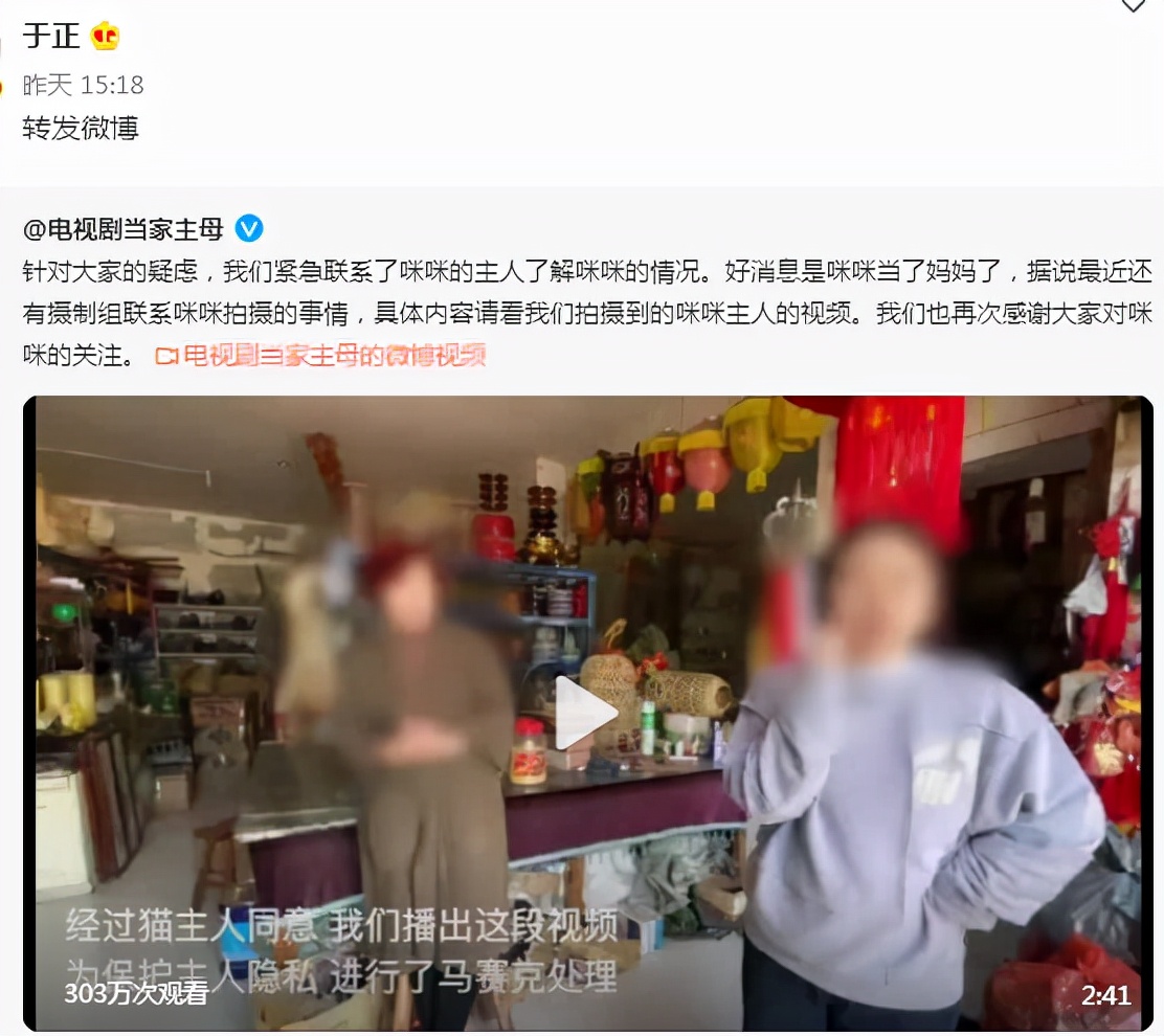 值得一提的是,有细心的网友还发现了一个问题,在《当家主母》剧组第一次回应时,称当时拍摄的时候,猫咪的主人一直都在一旁照顾。但是,在第二个视频回应中,猫主人直言,猫咪是被还回来的,显然猫主人不在剧组。