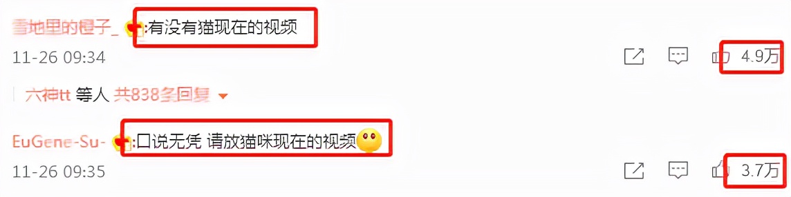 对于剧组的解释,网友们也并没有买账,纷纷要求看到现在猫咪是否还活着,其中,有两条要求看猫咪现在的视频的留言,点赞量分别为4.9万和3.7万。