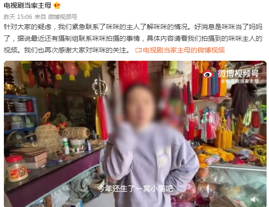 26日晚,《当家主母》官微,再次上传一段工作人员到猫咪的主人家采访,并拍摄了一段视频,来澄清。