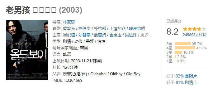 韩国导演朴赞郁的经典“复仇三部曲”之一,是国际影史经典。