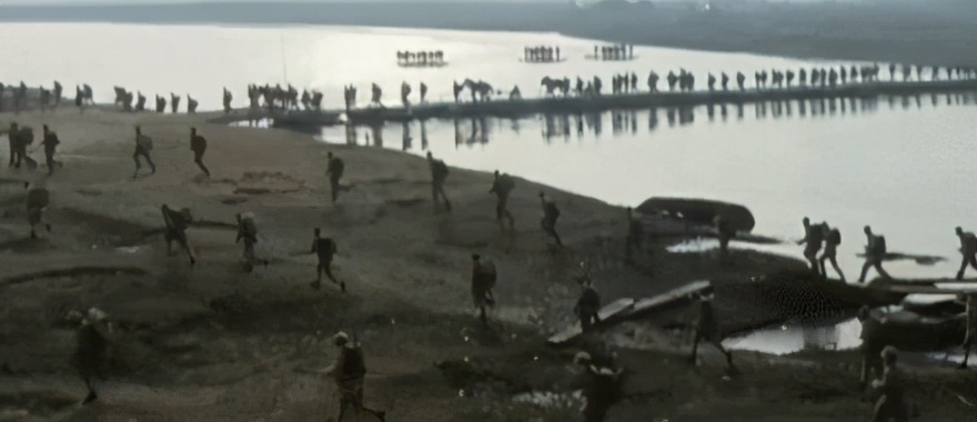 全长近3分钟,一镜到底,气势恢宏,场面壮观,还原历史,亲身经历般目睹了一次战争年代的行军场面。