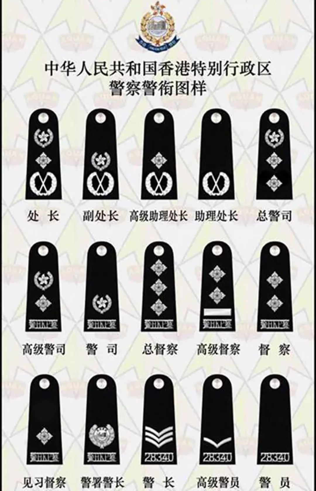 已取消级别有:助理警司、副督察、总警长(新郎哥)、高级警长(新郎哥)、警目(两柴)。【最小的叫pc,最大的叫cp,英文真神奇!】