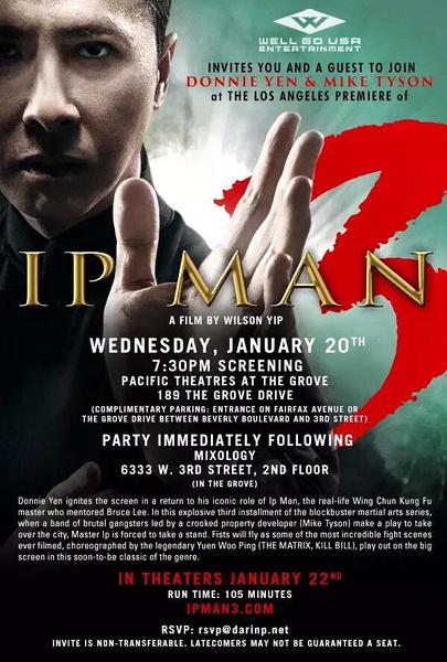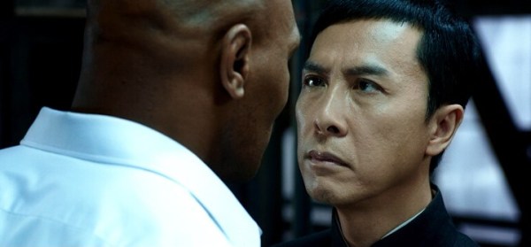 吐槽二是泰森戏份不过瘾。电影演了一个小时,泰森终于出场了,《叶问03》前期宣传将甄子丹和泰森的对决做得很大很大,我一直以为该是场巅峰对决戏,结果是点到即止的过场戏。泰森给了甄子丹三分钟,说撑得过三分钟恩怨一笔勾销,鄙视之意溢于言表。叶问还真的是撑过去的,关键时刻,那个闹铃响得真体面,如若不然,叶师傅头上挨上那么一重拳,或是叶师傅下了人家的裆,来回都不会好看。但是明显不过瘾呀!