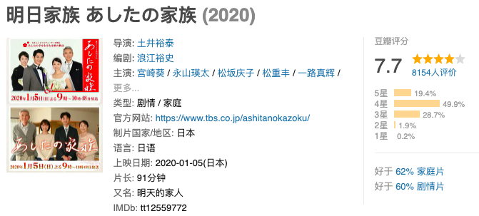 豆瓣评分7.7分,2020年评分最高日本电影排名第四。