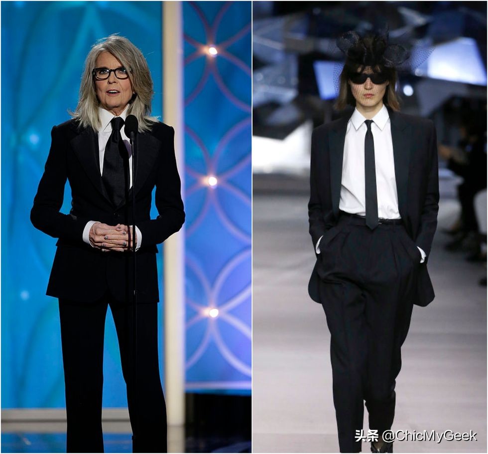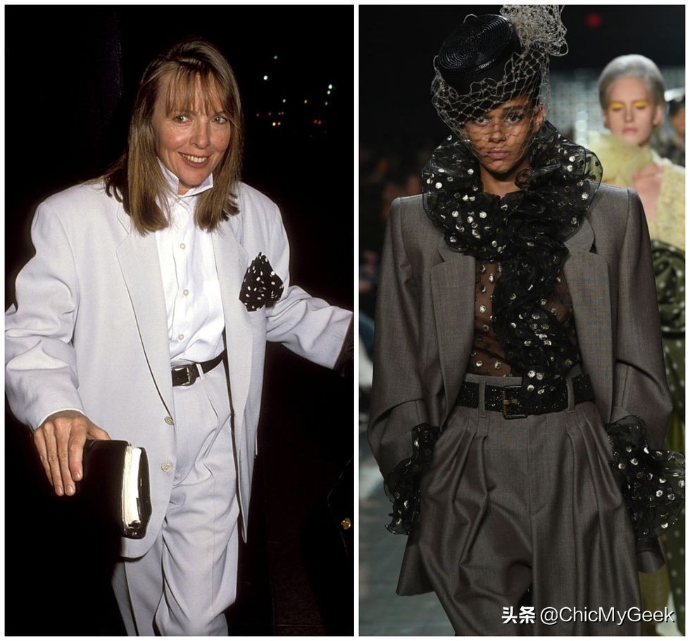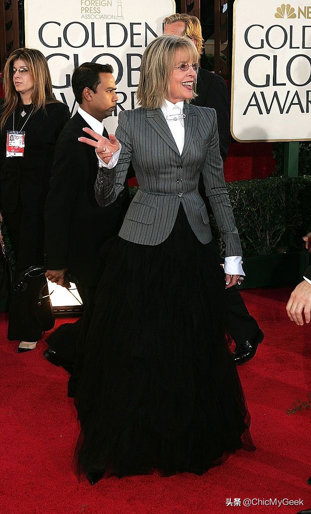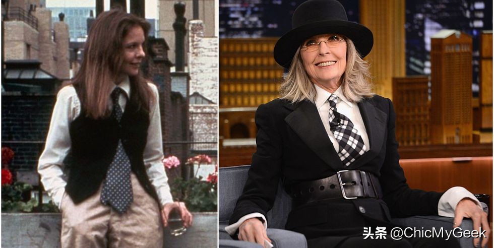 1977年电影《安妮·霍尔》中精彩的演出,不仅奠定她在好莱坞最佳女演员的地位,而片中她略带中感性的装扮,也成为她日后的个人穿搭风格。
