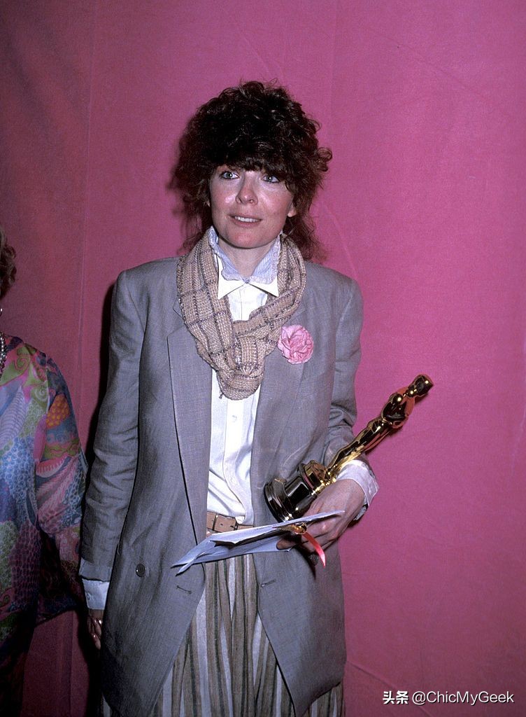 有别于其他好莱坞女星参加颁奖典礼的华丽性感造型,她在1977年奥斯卡颁奖典礼上的西装打扮,完全颠覆了女明星的穿搭规范。
