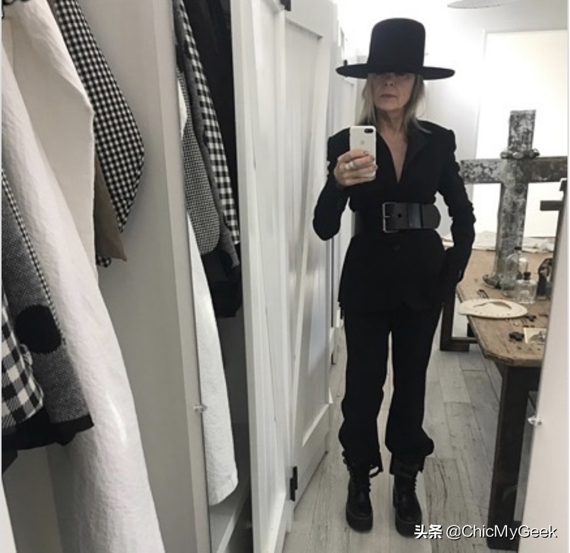黛安·基顿独树一格的个人穿搭风格,让她的instagram帐号在短短时间内,成为粉丝过百万的时尚网红。