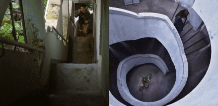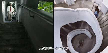 导演在处理这一情节,最妙的要属上下楼梯的细节,在刚分手时,男生兴高采烈的上楼梯,女生则是落寞的下楼梯。
