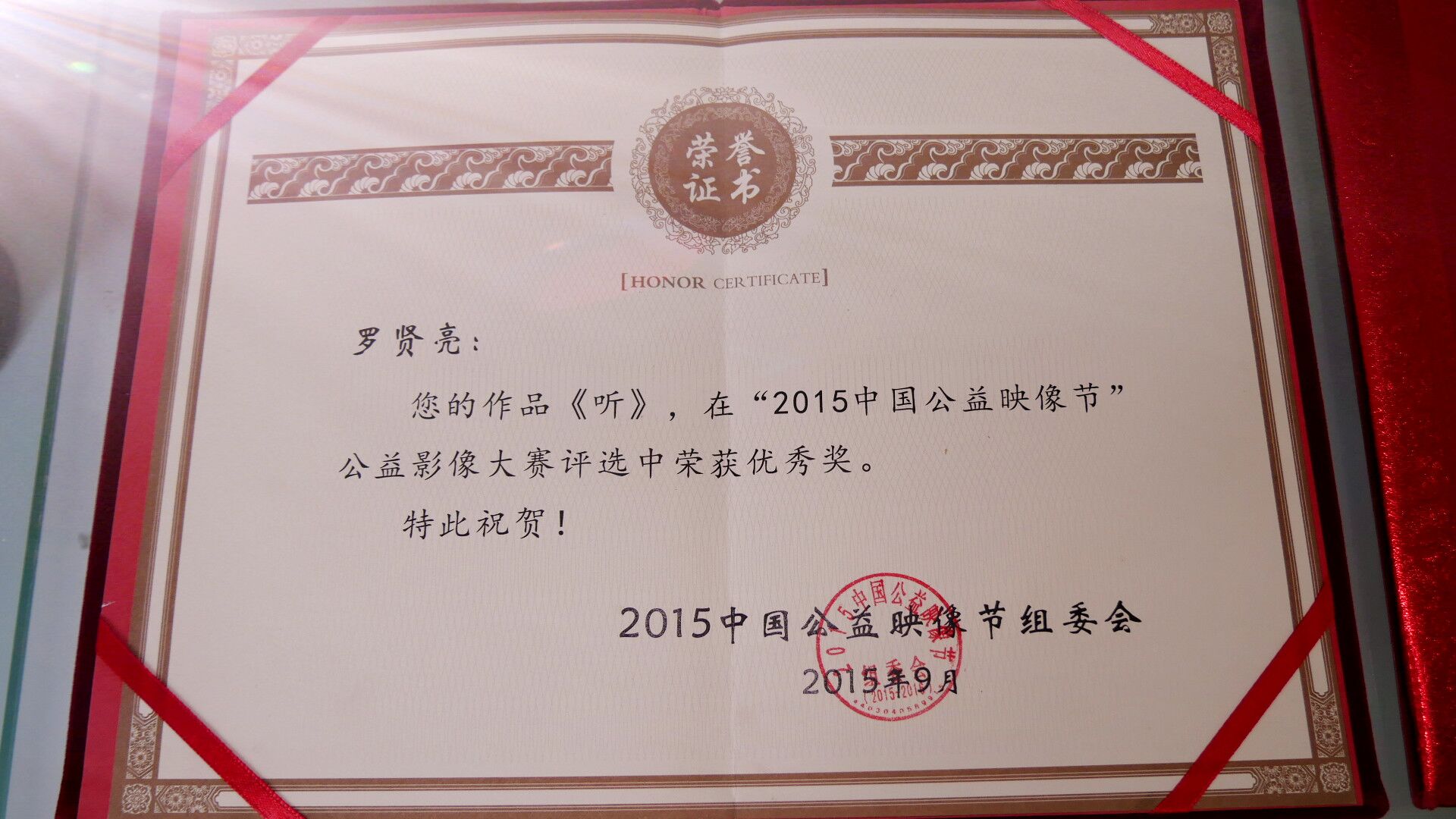 2015年凭残疾人公益短片《听》成功斩获中国公益映像节优秀作品奖。