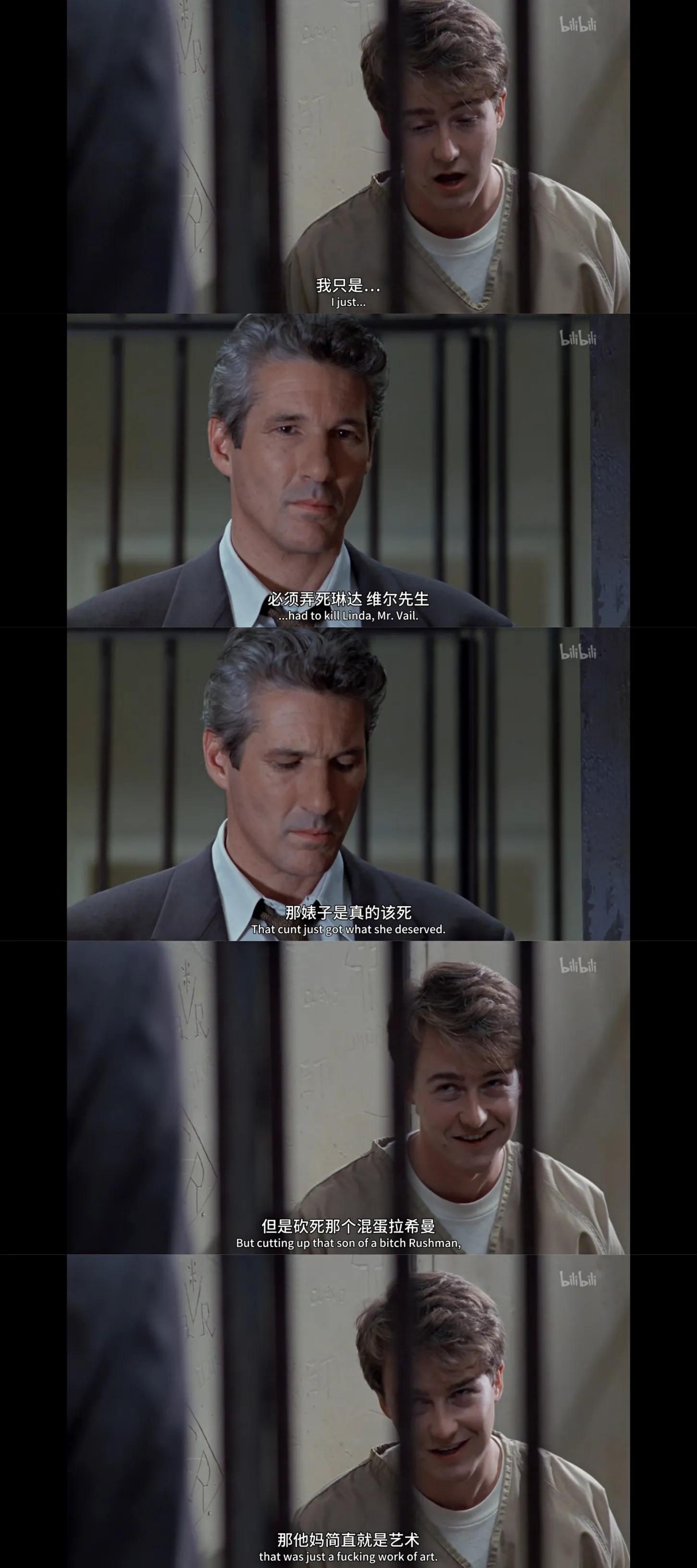 《一级恐惧》是诺顿的电影处女作,试镜时他从2100人中脱颖而出,影片里他纯良又暴躁,把艾伦这个角色诠释得淋漓尽致。