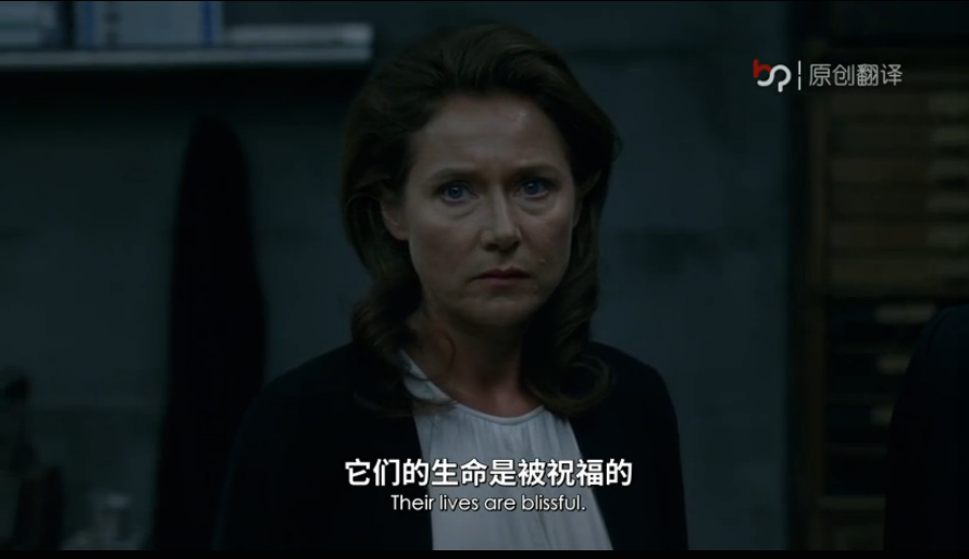 在树林的小木屋里,特蕾莎看到伯纳德的设计图,她问伯纳德怎么看,伯纳德的”机器人式“的标准回答让特蕾莎确认了他的身份,特蕾莎嘴边不经意浮现的一抹微笑,含义应该很多吧。