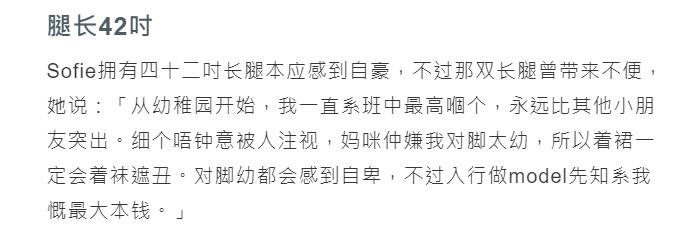 她本名sofie rahman,有四分之一马来西亚血统,是家中独女,因家境贫困20岁就参选港姐,获得当年亚军与最上镜小姐荣誉。