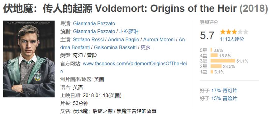 目前,《伏地魔:传人的起源》在豆瓣上仅拿到了5.7分,不及格。