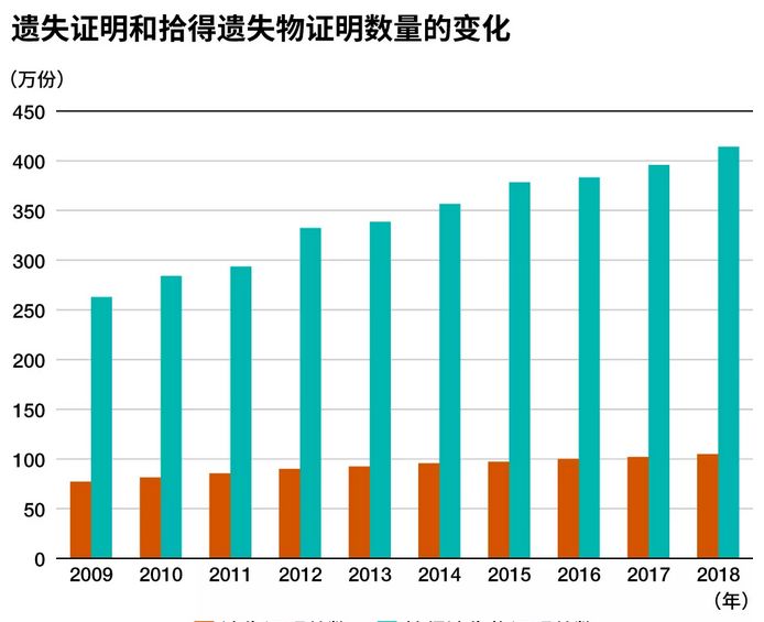 而警视厅受理的拾得遗失物证明总数为414万份,同比增长4.6%,也刷新了历史纪录。