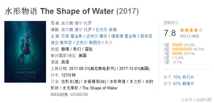 与爱情有关的童话故事每天也都在各种各样的影视剧里上演,今天小妹想说的这部黑色的童话《水形物语》,片里的爱情又美又诡异。
