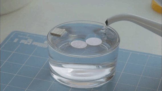 把一枚硬币放到水中会发生什么现象呢?