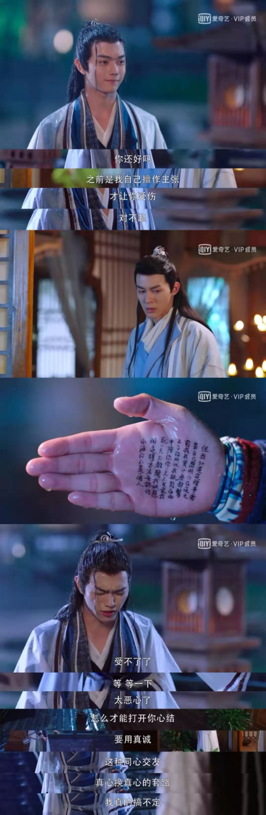 特别是有这么一个场景让我印象深刻,王陆(许凯饰)为了向自己的好兄弟海云帆道歉,听从风铃的教导,故意在雨中卖惨,一边还说着煽情的对白。