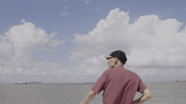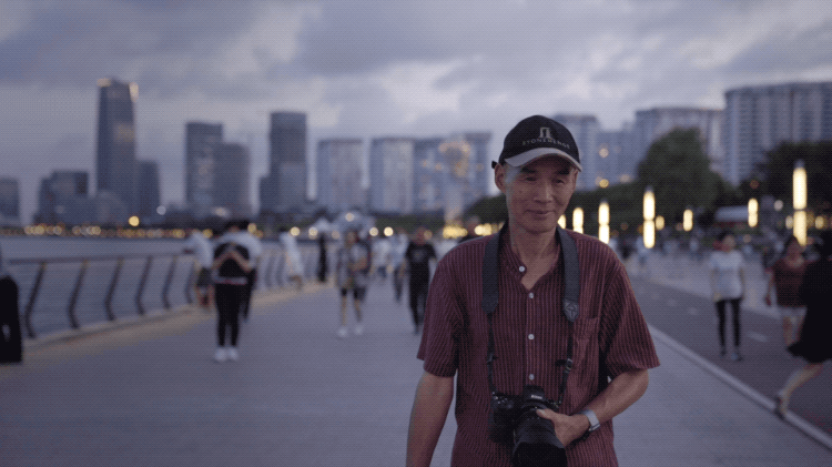 清晨七点,我们在一条摄影棚内见到梁永安。他穿着红色条纹衬衫,身形瘦削,背着笨重的双肩背包,只要出门,就会带上单反,随走随拍,捕捉江河与云影的变化。