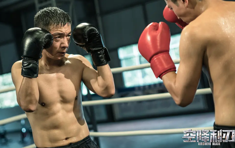 2019年军事大剧《空降利刃》他演的主角潘野,还展现了有腹肌的好身材。