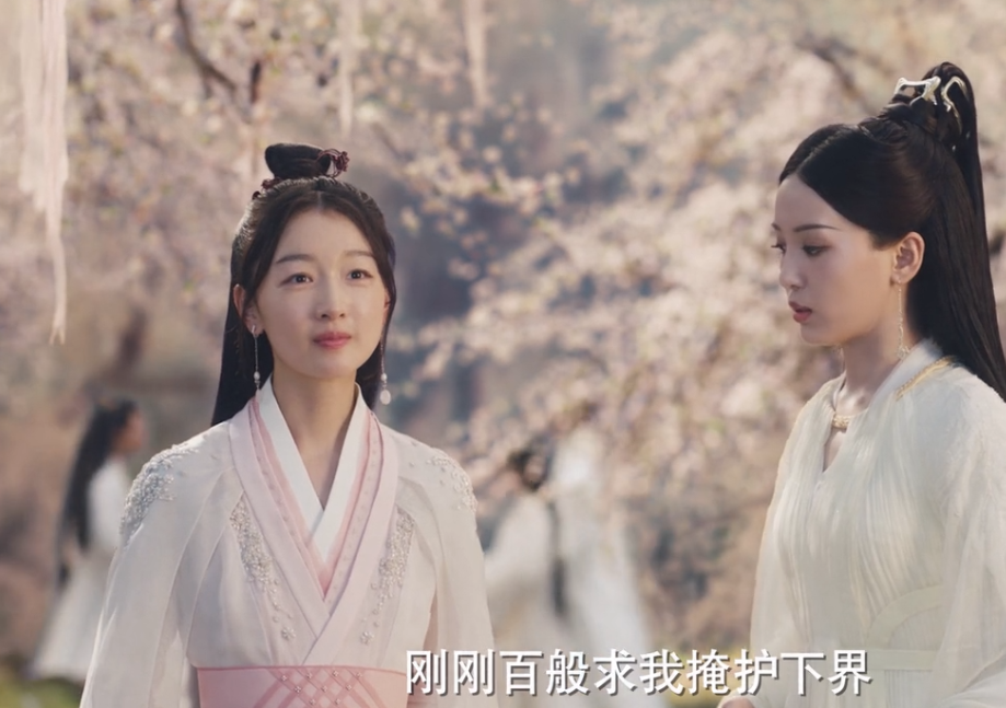 首先,因为周冬雨五官偏小,也属于淡颜,所以在剧里看起来不够精致,单眼皮和肿眼泡没有仙气,尤其是配上古装造型,就更显得违和。周冬雨一登场就多次和其他女演员同框,同框的对比就更明显了。