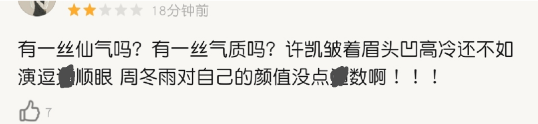 除了颜值下线外,周冬雨和许凯的演技也是有点一言难尽。在原著里,周冬雨饰演的上古一直都是无欲无求的淡漠样子,在周冬雨的演绎下,上古反倒成了蹦蹦跳跳的小女生,这样的变化也让不少原著粉无法接受。