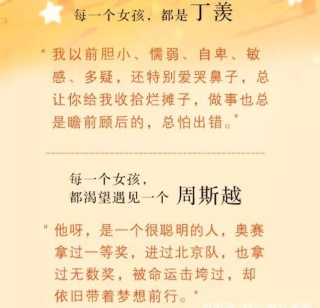 丁羡复读,考上了清华。丁羡找到周斯越,眼睛里闪烁着希翼,却碰上了周斯越的冷漠,眼前从前向光的少年帅的颓废,他对她说:“我没有谈恋爱的打算。”他又说,“丁羡,我没拿奖。看到了,我过的没你想象中那么好。”