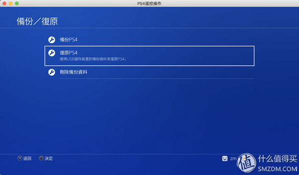 设置——系统——备份/还原——还原ps4(插入已经拷贝了备份文件的u盘)——选择备份资料——等待还原结束。
