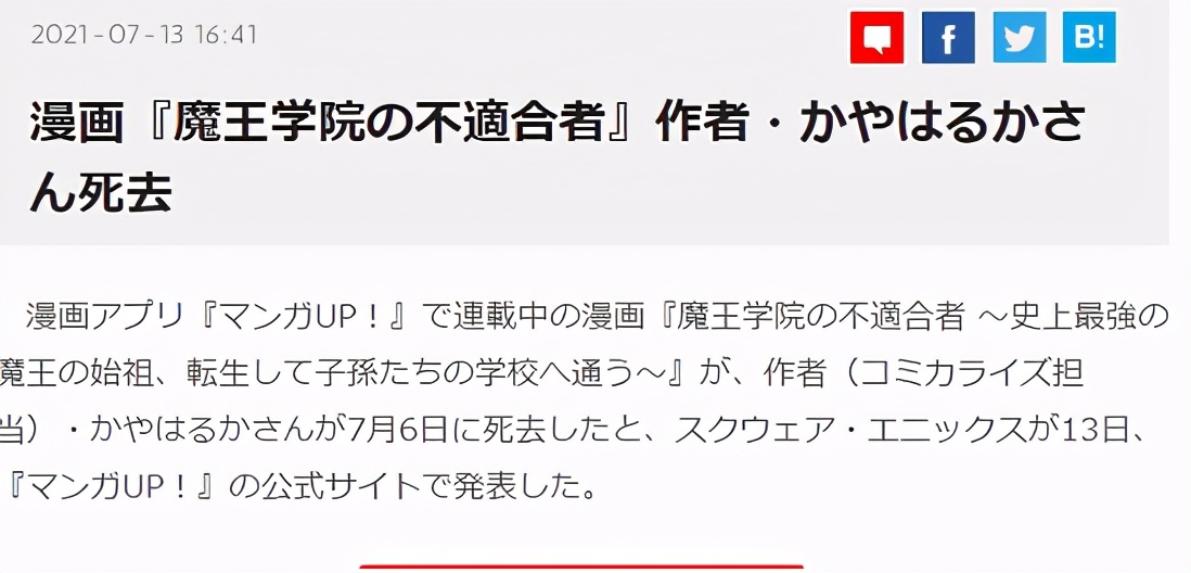 就在2021年7月13日,有新闻媒体发表消息称,日本漫画家かやはるか老师去世了,至于原因的话大概率是上面所说的胰腺癌,病没治好也就算了,现在人还没了,这还真是个悲伤的故事。