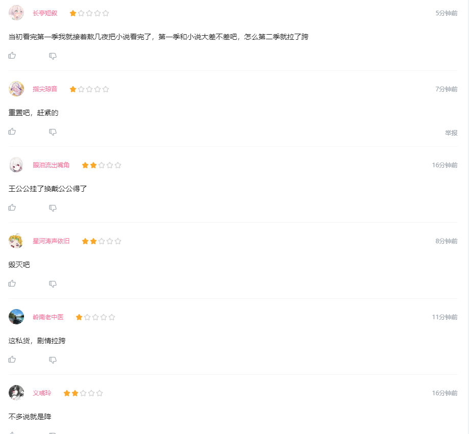 打开小破站《元龙》第二季动画的评论区,最新的评论基本上都是一星差评,甚至还有人呼吁重做第二季的动画。并且,还有人质疑平台对《元龙》第二季动画有控分的嫌疑,否则分数连6.9分都到不了。