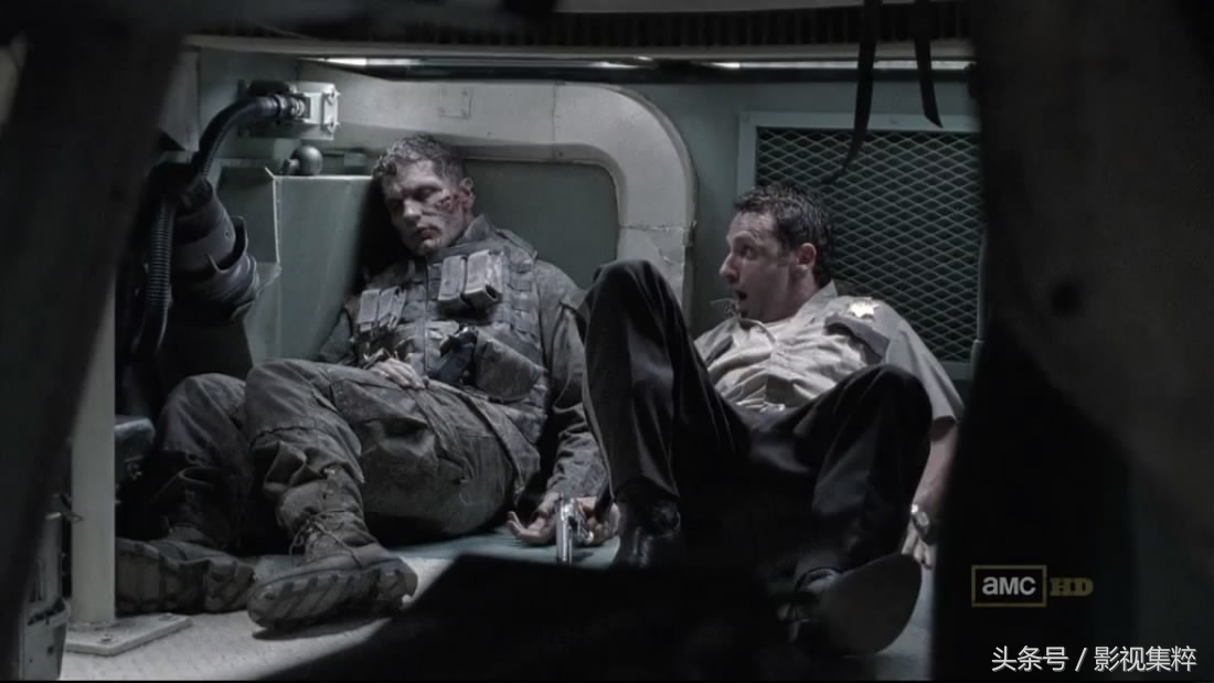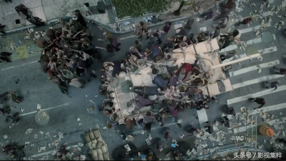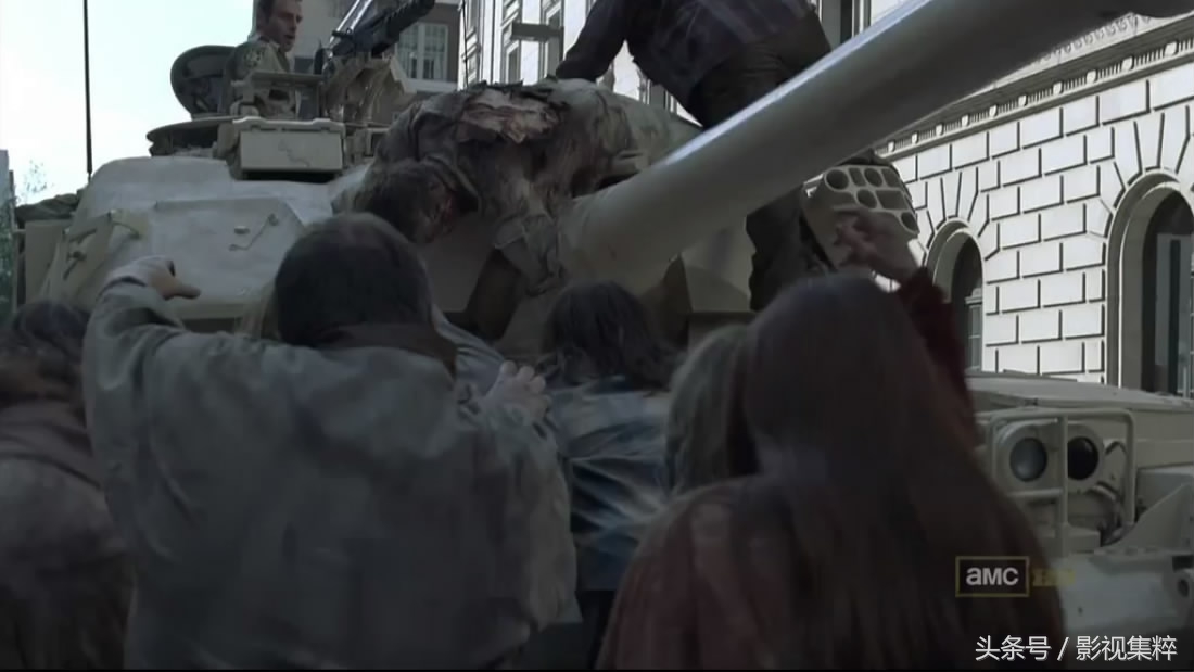 马儿已被行尸杀死,大量的行尸趴在马儿的尸体旁边分食马肉。瑞克不敢冒然从坦克里面冲出来,只能待在坦克中寻找求生方法。