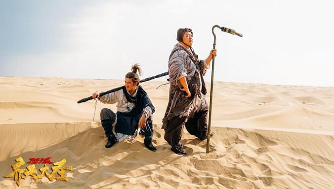能够取得连破平台纪录、收获各方好评的耀眼成绩,这部作品必然有其独特的过人之处。作为一部奇幻动作喜剧,《齐天大圣·万妖之城》的故事衍生自《西游记》中唐僧师徒横渡流沙河的经典情节。由于取景要求严苛,主创团队为呈现宏大真实的场面,横跨三省,远赴内蒙古、宁夏、浙江等地进行拍摄。同时,为了真实还原人迹罕至的流沙河,演员与拍摄团队在沙漠中进行了长达一个月的取景时间,力保成片效果。
