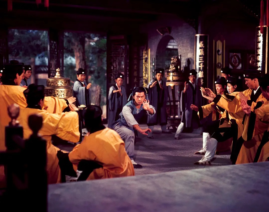 1 《雍正大破十八铜人》由郭南宏执导,黄家达上、官灵凤、 田鹏等人主演的功夫片。讲述了雍正私改诏书,谋夺帝位。在少林寺,苦练少林上乘功,图闯出通天门的故事。本片我竟然精神抖擞地看完了。因为有期待,看过《雍正王朝》《雍正剑侠图》等人都熟悉,再看看这个雍正。然后就不断振奋,一是这个雍正振奋地出场,像摇滚巨星,让人振奋。二是以极端的方式登基,让人振奋。三是闯关太像打游戏,而且屡屡game over,让人振奋。