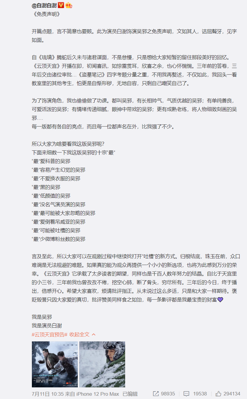其实《云顶天宫》开播之前,还是有很多“盗墓笔记”粉丝表示期待的,换主要演员这种事对别的剧可能天都塌了,但是对于“盗墓笔记”ip而言早已司空见惯了。