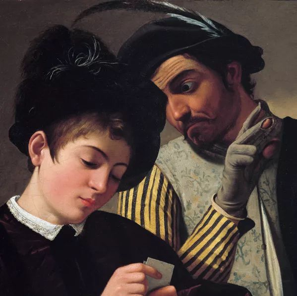 一画成名的卡拉瓦乔被当时艺术圈的大人物——红衣主教德尔蒙特一眼看中,主教以超低价买下了卡拉瓦乔的两幅画——《老千》和《占卜者》。要知道,主教是全罗马排名第一的艺术藏家,还是画家行会会长,被他看中,那前途是不用愁的。