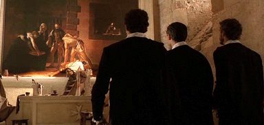卡拉瓦乔为什么能得到主教这样的赏识?因为他对明暗光线的把握实在是太过精准,又十分擅长捕捉故事中最精彩的瞬间,笔下的人物好像都是动起来的。设想一下,身处17世纪,却有人能够让你看一场精妙绝伦的电影,任谁也觉得新奇。