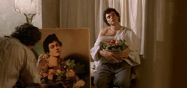 主教越看越喜欢卡拉瓦乔的画,干脆直接让小画家搬进自己的宫殿里。他向卡拉瓦乔保证,这儿不愁吃穿,要啥有啥,你还可以带着自己的朋友一起住进来,我都无所谓,只要你能画出像《捧水果篮的男孩》里那样的美少年,一切好说。
