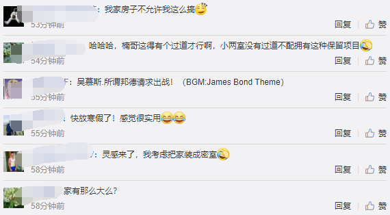 看谢楠的布置,拉起警戒线的走廊两侧有四间房,而对于很多普通人来说并没有这么大空间,为此,有网友留言:“家有那么大么”、“首先你得有个大house”、“得有个过道才行啊,小两室没有过道不配拥有这种保留项目”。