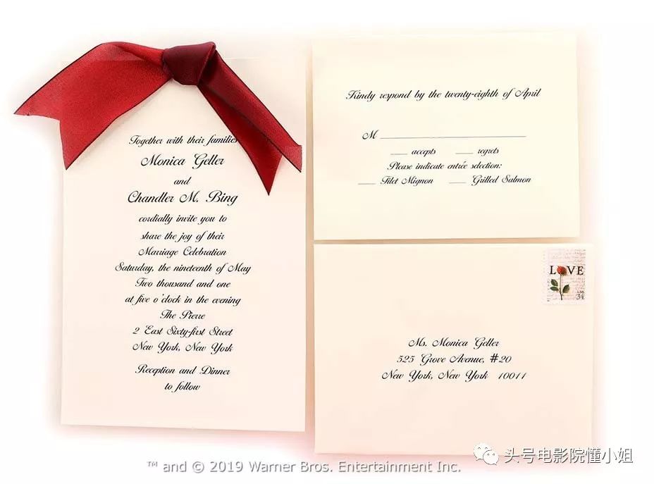同样来自第七季的,莫妮卡和钱德勒的婚礼邀请函套装(估价1000-1500美元)。