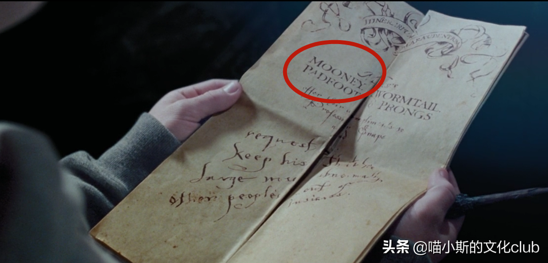 仍然是这张活点地图,上面“月亮脸”(moony)的拼写被错写成了mooney。不过,这可不是道具组的失误,他们是故意这样设计的,因为这部电影的视觉特效监制的名字是karl mooney。制作组故意跟karl mooney开了个玩笑。