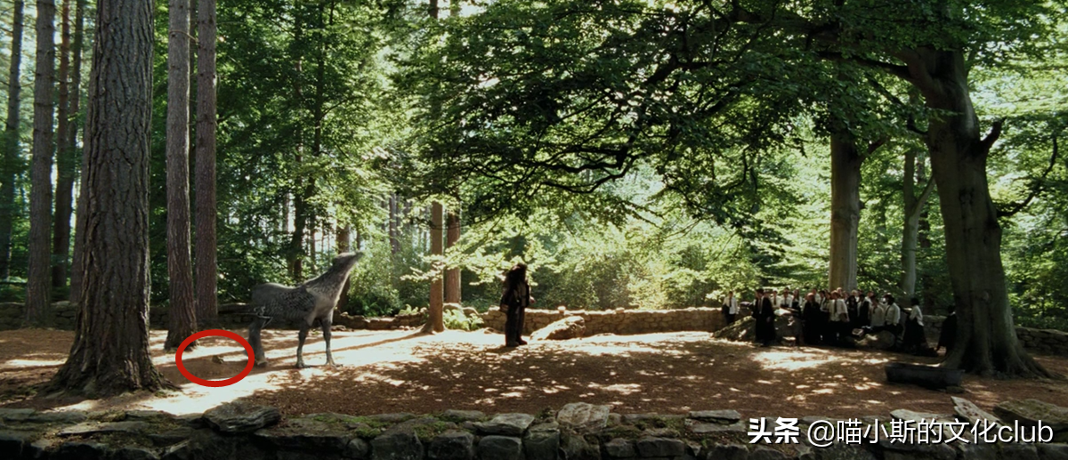 在上神奇动物保护课时,海格问谁要上前和巴克比克打招呼,众学生后退一步把哈利推了出去。就在哈利上前时,巴克比克拉了一坨翔。这是第一次在故事片电影中出现动物大号的镜头,虽然只是cgi制作的。