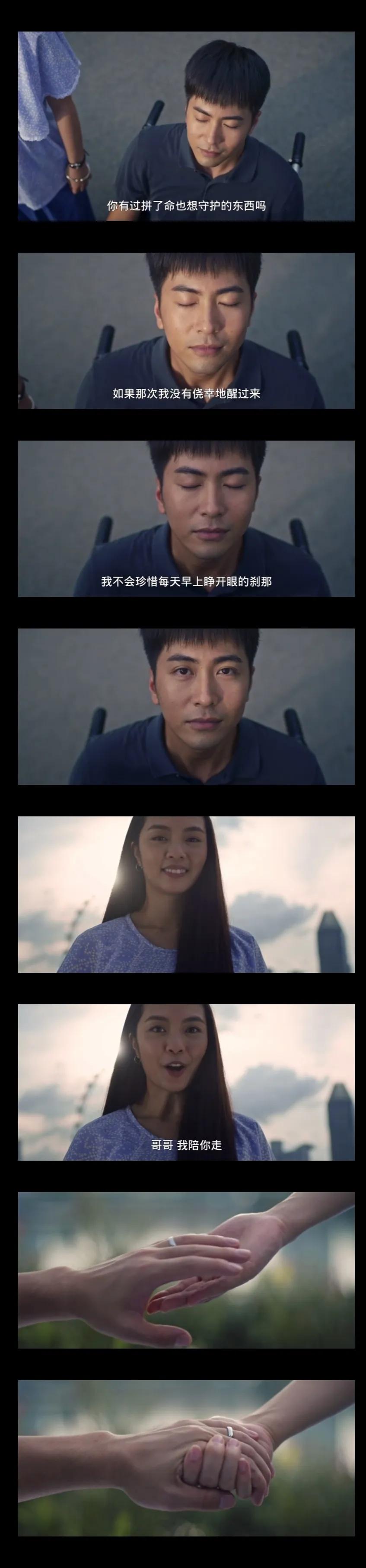 相互治愈,特别像那些年看过的小说。男主发生车祸,双腿肌肉萎缩,得坐轮椅,这时候小太阳女主出来治愈男主,一步步走入男主的心中,男主慢慢恢复,后来男主复发,违心赶走了女主,最后也是大团圆结局,男主去越南找回了自己的新娘。