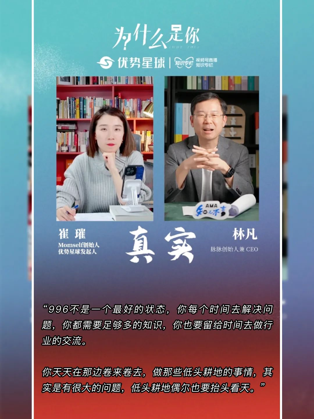 为什么能坚持,因为我喜欢「个人成长」这件事,直播是目前看上去效率最高的一个动作,那就做了。
