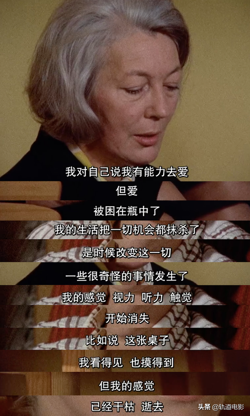 上面提到的雅各比无法说明为什么会缺少爱,指向的便是爱的能力,根源在于童年对爱的缺失。就像伯格曼曾提到的“在我生活和呼吸的世界里没有爱。我对任何人和任何事物都感受不到爱,对自己更是如此。”于是,这种对爱的强烈渴望一直苦苦折磨着他,他渴望爱的同时却不懂得如何去爱,因此他通过本片中的人物一次次追问为什么会缺少爱,这些深层原因直接导致了约翰和玛丽安娜的分开,而令人奇怪的是,当距离拉开之后,从亲人关系重回朋友关系之后,他们的关系不但改善了,那种爱的能力又神奇的恢复了。此时说明在重复化的生活中,我们往往忽略了亲人的感受,这仍是重要性降低的一种表征,而爱的能力需要不断提升,才能缓和日渐尴尬的双方处境。