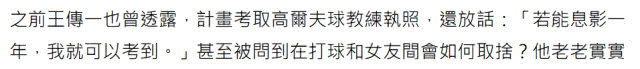 甚至可以说是高尔夫球大过天,不但说过自己若能息影一年,一定可以考取高尔夫球教练执照。