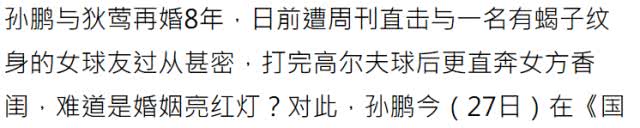 不过这段绯闻在孙鹏的老婆狄莺发声下就结束了。虽然说是相信,但那句“没有人可以破坏我的家庭”却有点意味啊。