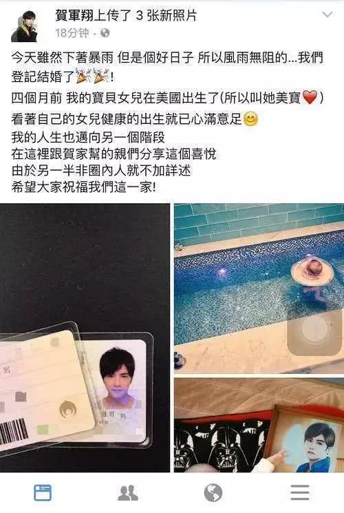 先是贺军翔在去年自曝已经结婚生女,据说妻子可是他在国中的初恋呢。