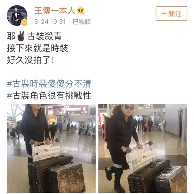 而最近在王传一的微博中也能看到,他还在继续拍戏,古装时装都有。