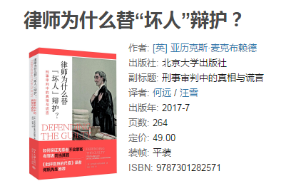 英国律师亚历克斯·麦克布莱德的纪实性小说,《律师为什么替「坏人」辩护》。
