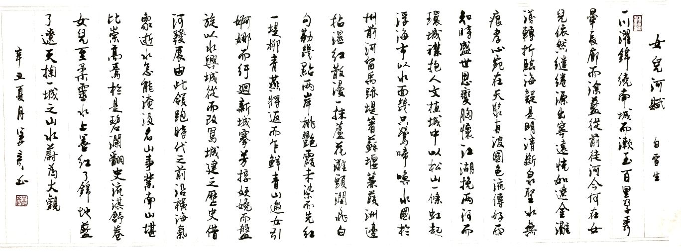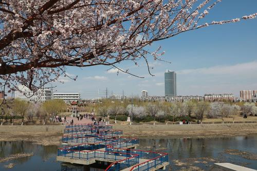 好雨知时,盛世思变。胸怀江湖,挽两河而环城;襟抱人文,植城中以松山。一條虹起,浮海市以水面;幾只莺啼,唤水国于州前。河留禹迹,堤著蘇堰。蒹葭洲邊,拈湿红散漫一抹;芦花滩頭,潤飞白勾勒几点。两岸桃艷,霞未染而先红;一堤柳青,燕将返而乍鲜。青山邀女,引婀娜而纡廻;新城搴芳,接妖娆而盘旋。 以水兴城,从而改写城建之历史;借河发展,由此领跑时代之前沿。横海气象,逝水怎能淹没;名山事业,南山堪比崇高焉。